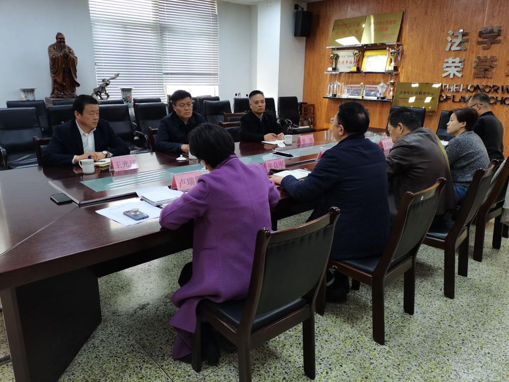 调研座谈中,学院党委书记曹明亮介绍了学院师资队伍、学科建设、科研成果等情况,着重介绍了学院在安全工作中的一些重要举措。院长张益刚就学院学术研究平台搭建、硕士点建设、学科建设、实验室建设和服务地方等作了详细汇报,并提出了需要学校协调解决的问题和学院发展规划愿景。卢瑞霞从学生培养的六强六有目标构建到“心安”“居安”“导学”“导识”“导志”等学生教育管理的特色做法进行了汇报。李冬楠副院长从教师、学生两方面介绍学院教学工作,并对下一步律师实验班、涉外法学实验班建设、教学质量监控以及推动教研中心建设深化和实践教学工作作了汇报。院长助理李继刚详细汇报了学院科研情况。