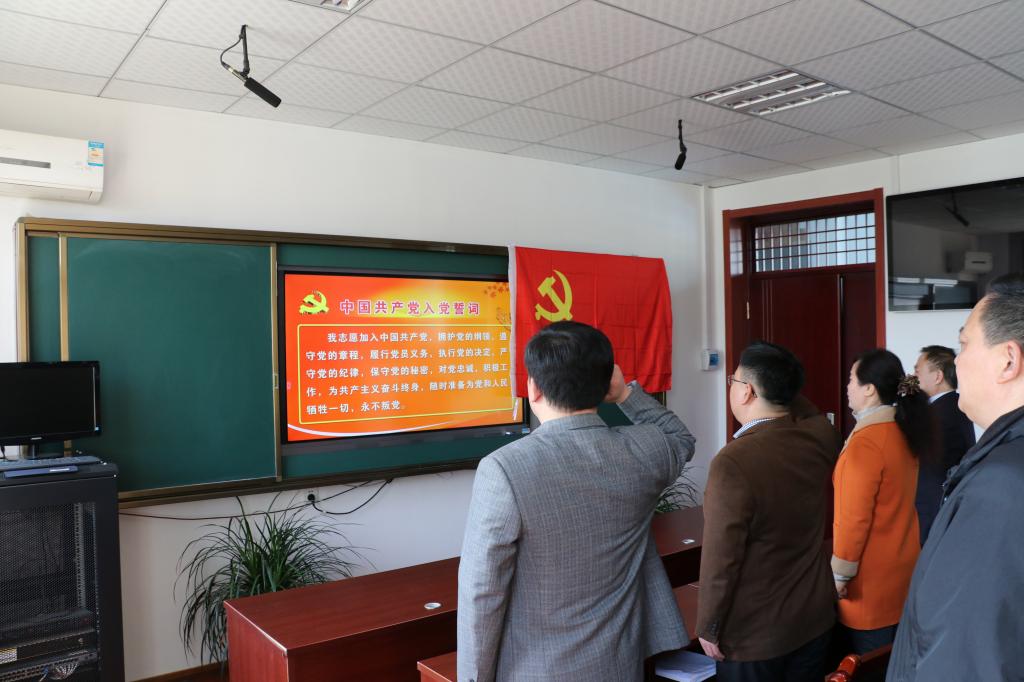 随后,学院党总支副书记、教工党支部书记马秀峰带领全体党员重温入党誓词。党员们面对鲜红党旗,右手握拳,庄重宣誓,进一步坚定了政治立场,增强了使命感和责任感。