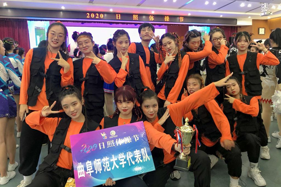 曲阜师大新闻中心讯(通讯员:田青    摄影:黄运佳、陈泳如) 12月19日,由日照市教体局主办的“魅力体操,活力日照”2020年日照体操节火热开赛,共有来自全市60多只代表队1300余人参赛。我校地理与旅游学院啦啦队在体育教学部吴婧老师的带领下,代表学校参赛,以第一名的优异成绩,荣获街舞自选项目(大学组)一等奖。