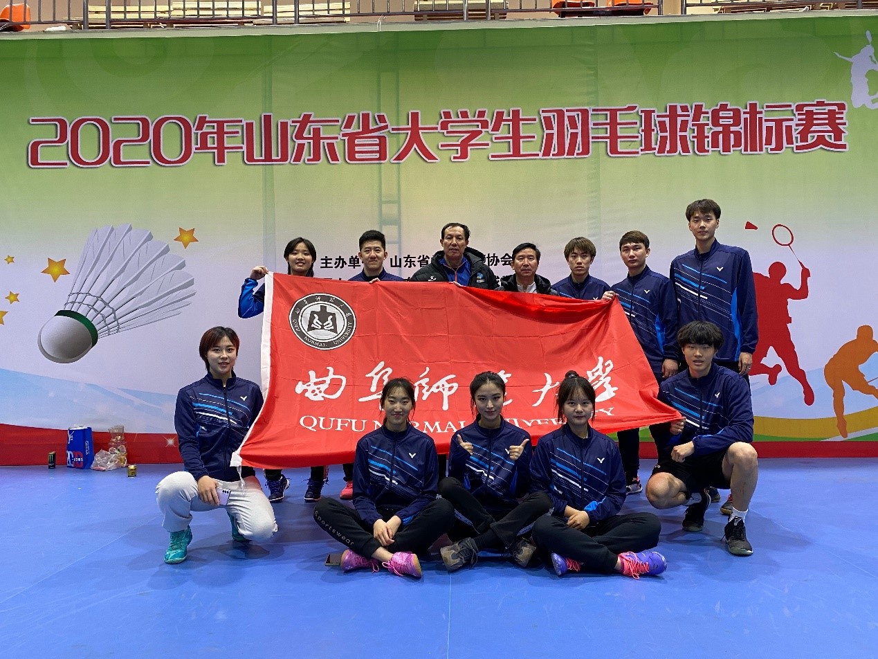 曲阜师大新闻中心讯2020年山东省大学生羽毛球锦标赛于12月13日至17日在山东鲁能泰山足球学校举行,比赛分甲组、乙组、丙组,甲组适用于普通专业本科学生,乙组适用于普通专业专科学生,丙组适用于普通专业招收的高水平运动员及体育专业的本科学生。体育科学学院羽毛球队参加体育专业组的比赛,在盛绍增、曾凡鑫老师的带领下,夺得男子团体冠军、女子团体冠军、男子双打冠军、女子双打冠军、混合双打冠军,创造了我校羽毛球比赛中的最好成绩。