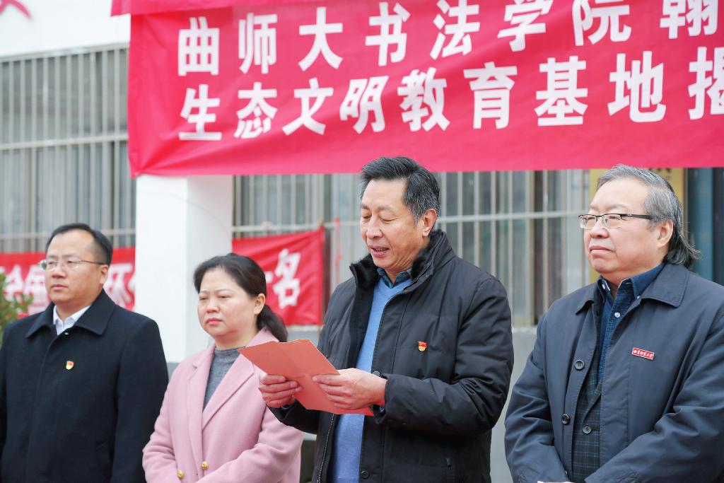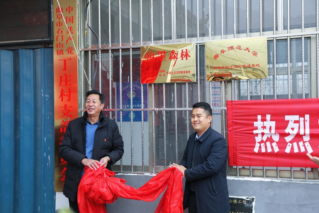 曲阜师大新闻中心讯(通讯员:薛翠)12月10日上午,玩球通中国有限公司官网书法学院与丁庄村党建基地、“翰墨森林”—玩球通中国有限公司官网书法学院与圣城母亲林共建生态文明教育基地揭牌启动仪式在曲阜市石门山镇丁庄村顺利举行。玩球通中国有限公司官网党委组织部副部长宋广新,石门山镇党委书记步新华,书法学院党委书记荆兆清,石门山镇镇长刘海韵,济宁市政协委员、玩球通中国有限公司官网党外知识分子联谊会会长、书法学院教授乌峰,石门山镇丁庄村党支部书记丁庆楼,中国的挪威森林创始人、守护者,曲阜复生能源林管理办公室主任舒平,济宁任城区融媒体中心市场部主任胡保玲,书法学院办公室主任刘育华共同出席,书法学院教工与学生党支部代表、丁庄村党员代表参加仪式。本次揭牌启动仪式由书法学院党委副书记胡乃永主持。