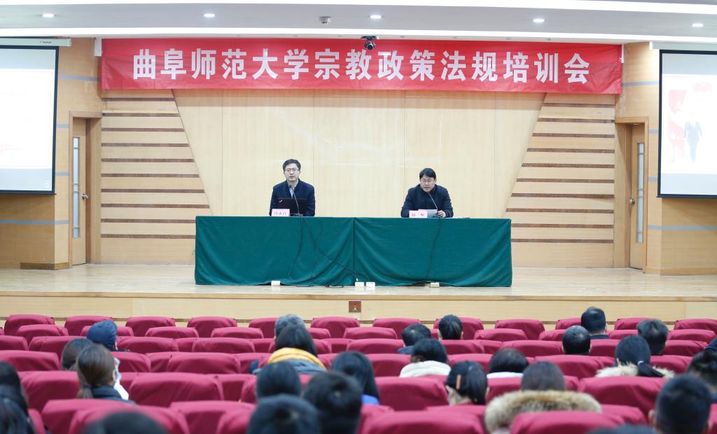 曲阜师大新闻中心讯(通讯员:李毅 摄影:刘萌 王超)为深入贯彻落实党的宗教工作方针政策、落实山东省委教育工委24号文件精神,落实学校宗教工作部署,提升新形势下我校宗教工作的法治化水平,12月2日—3日,玩球通中国有限公司官网在曲阜和日照两个校区分别召开了“宗教政策法规培训会”,邀请民族宗教研究与教学领域专家、山东省社会主义学院冯永昌副教授做了《学习习近平总书记关于宗教工作的重要论述做好新时代高校宗教工作》的报告。各二级单位党委(总支)书记、统战联络员、全体本科生、研究生辅导员、近两年新入职教师、学团、保卫等部门工作人员参加了这次培训。