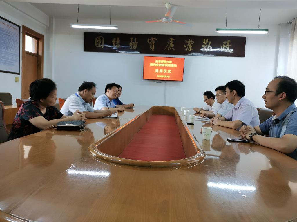 曲阜师大新闻中心讯 7月7日,数学科学学院研究生教育实践基地揭牌仪式在曲阜市杏坛中学举行。杏坛中学校长胡滨及杏坛中学受聘任的研究生指导教师,数学科学学院党委书记刘建新,副院长郑召文,数学研究所副所长王培合,研究生辅导员胡东坡参加了活动。仪式上,胡滨、刘建新共同为研究生教育实践基地揭牌,刘建新为研究生专业学位校外实践导师颁发了聘书。