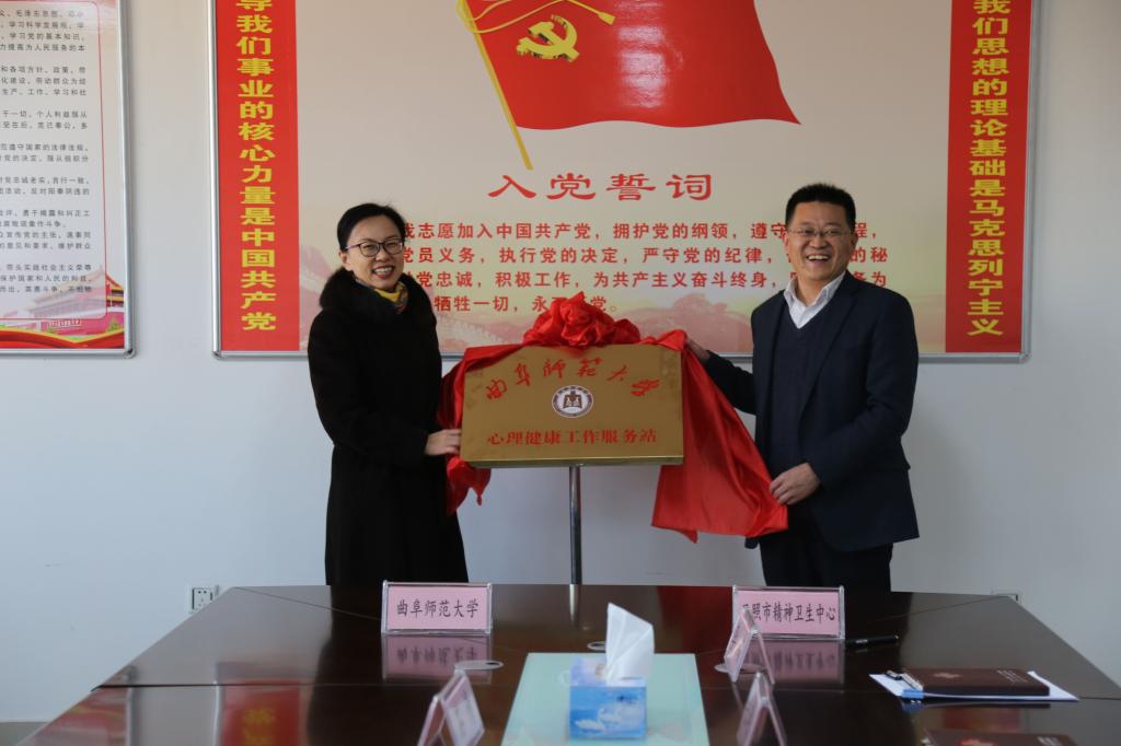 受校长张洪海委托和授权,我校学生工作处处长姜美颖与日照市精神卫生中心主任安晓东共同签署《大学生心理卫生服务绿色通道协议》,并为心理健康工作服务站揭牌。