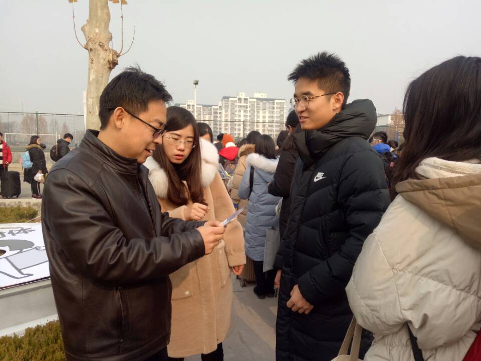 12月19日早上,在数学科学学院党委副书记曲凤东的带领下,辅导员老师们为2016级考研学生发放新鲜的橙子,预祝考研学子心想事“橙”,一吃“橙”功。