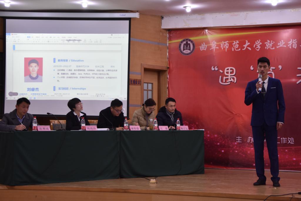 12月15日下午,由我校学生工作处主办、历史文化学院承办的“遇‘简’未来”求职技能大赛决赛在孔子会堂举行。学生工作处处长姜美颖担任大赛特邀嘉宾,对大赛进行了总结。济宁创业大学校长谢伟强,大智教育集团人才院院长孙玲玲,我校学生工作处副处长石倩、党委宣传部副部长杨正运、招生办公室副主任沈秀清担任大赛评委。