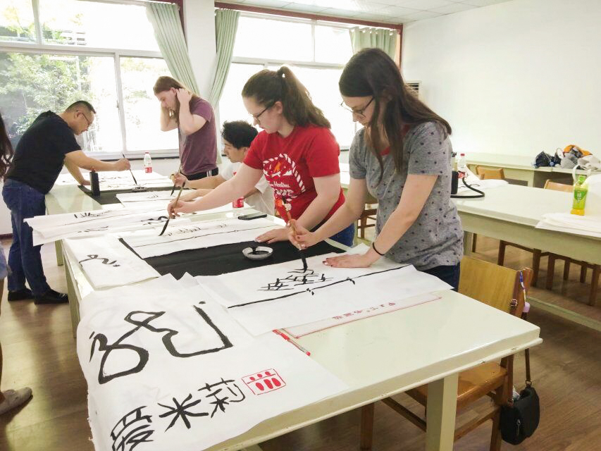 我校为代表团安排了汉语语言课和丰富多彩的文化体验活动,让远道而来的客人多角度、全方位地领略我国的传统文化,了解我国的风土人情。在汉语课上,同学们刻苦学习,积极发言,开展了一堂堂趣味横生的语言实践课;在太极课上,通过老师的耐心讲解与演示,同学们很快掌握了太极的宗旨与要领,体会了太极刚柔并济、以柔克刚和阴阳相生的特点,深入感受了道家思想的韵味;书法课和剪纸课则让同学们从美学的角度体验了中华民族传统文化艺术的独特魅力和中国人民的智慧;儒家文化遗产“三孔”景区现场教学、孔府阁篆印刻艺术体验、葫芦民俗馆参观等活动,通过寓教于乐的方式和互动体验的模式,让加拿大朋友亲身感受了儒家思想的源远流长和中国历史文化的厚重。