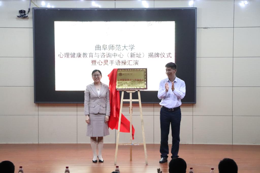 校区管理办公室主任孔令军、学生工作处处长姜美颖共同为心理健康教育与咨询中心(新址)揭牌。
