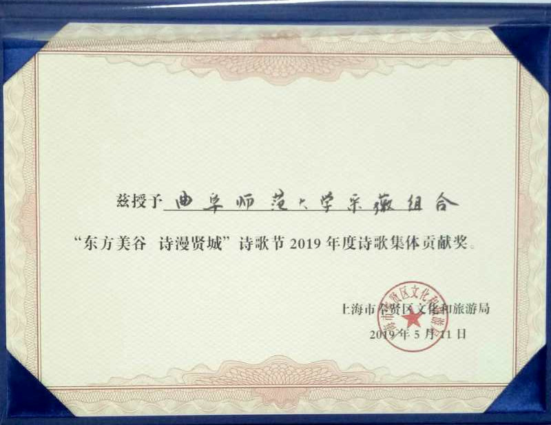 我校采薇组合荣获2019年度诗歌节诗歌集体贡献奖