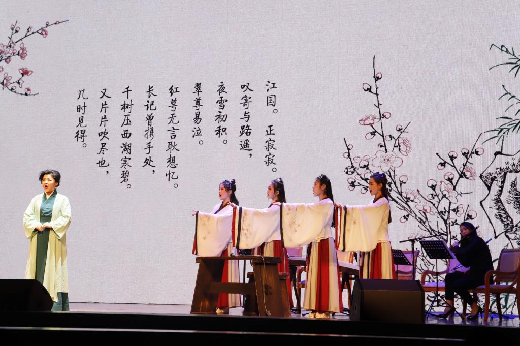 “旧时月色,算几番照我,梅边吹笛?唤起玉人,不管清寒与攀摘。”我校采薇组合在诗歌节展演活动中为大家倾情表演了宋代词人姜夔的作品《暗香》,古典优雅的曲调、婉转空灵的声音带领大家共同感受姜夔思念故人的心境。
