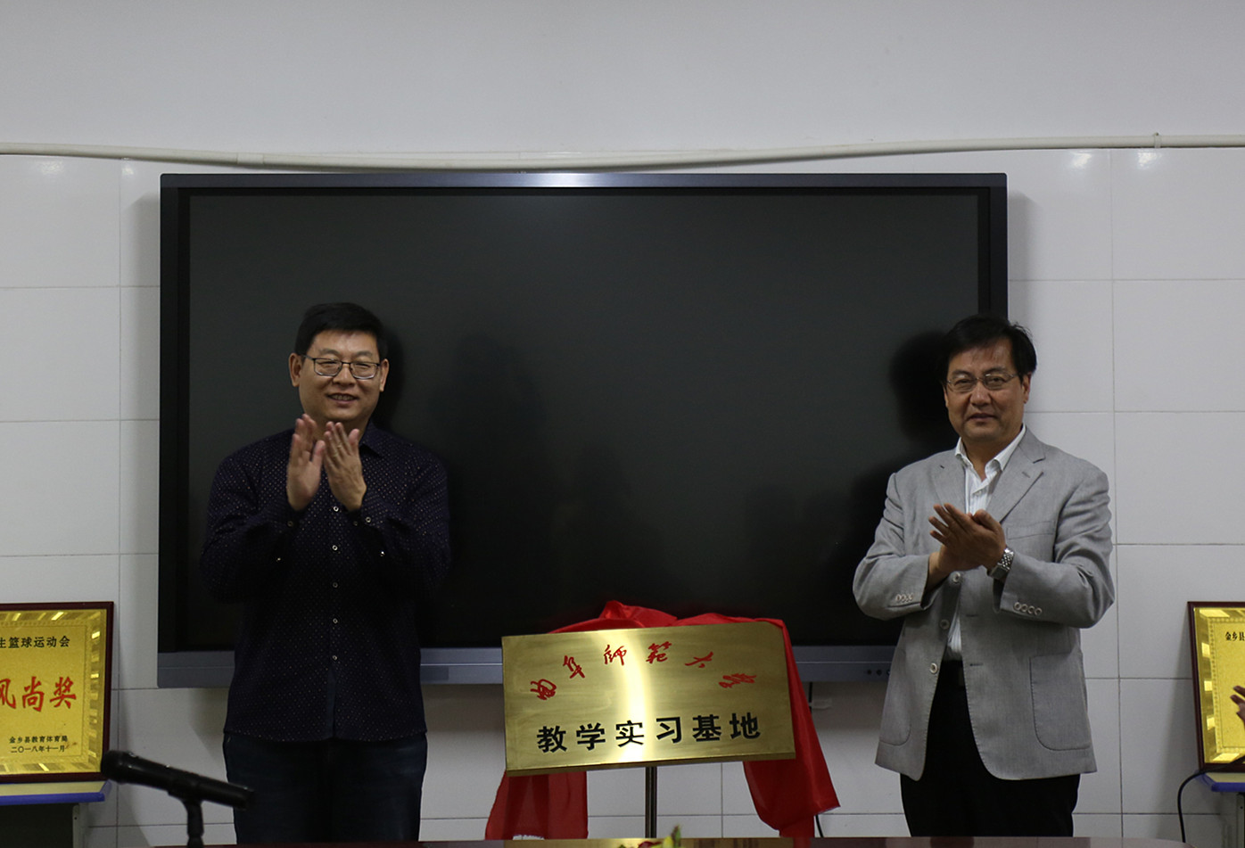 在金乡县,文学院党委副书记王作茂、数学科学学院党委副书记刘建新与金乡县教体局局长李英渠、金乡县实验中学校长周明坤等共同出席了“玩球通中国有限公司官网教学实习基地”挂牌仪式。仪式上,刘建新代表学校致辞,王作茂与周明坤共同签署了实习协议,并为”教育实习基地“揭牌。