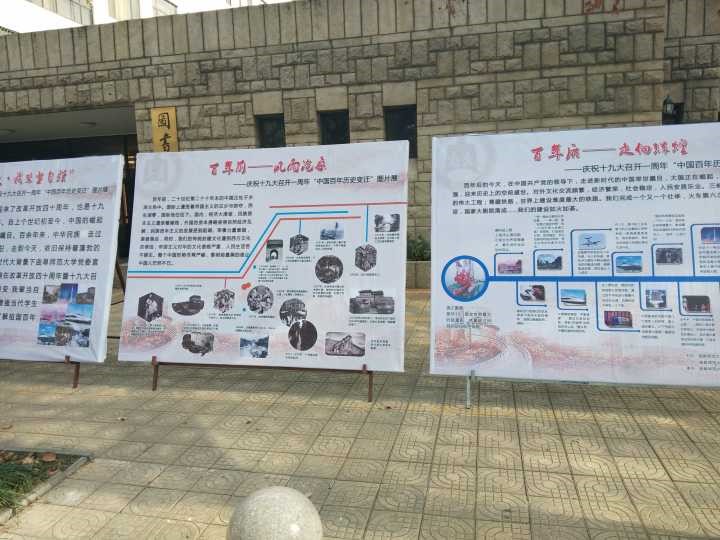 2018年12月,在改革开放四十周年暨十九大召开一周年之际,为了使学生了解祖国百年沧桑变化,增强学生家国荣誉感和自豪感,我校图书馆联合党委宣传部、校团委、校学生会,推出中国百年历史变迁图片展。