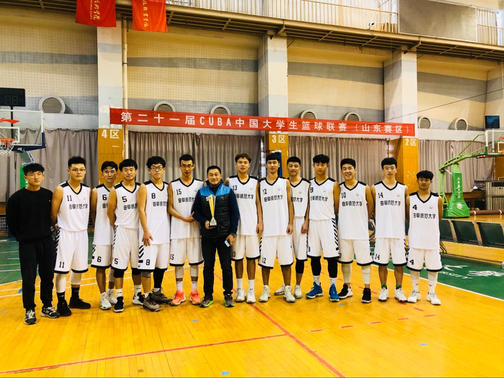 我校男篮在领队杨弢教授、教练孟庆波老师带领下参加了本届Cuba比赛。经过一周的激烈角逐,我校男篮不畏强敌、顽强拼搏、灵活运用战术,展现出了曲园学子良好的精神面貌,最终夺得了本次比赛的第六名。王志昊同学和张干同学被评为“优秀运动员”。