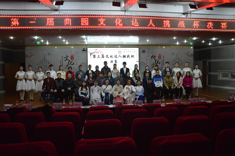 128日下午,我校第三届文化达人挑战杯决赛举行。比赛由校团委、图书馆举办,图书管理与服务学生委员会承办。地理与旅游学院党委书记胡长春、校团委副书记刘蓉、历史学院副教授王红霞、校团委宣传部部长马腾作为特邀嘉宾出席了本次决赛,图书馆主要负责人以及教师参加了本次比赛。