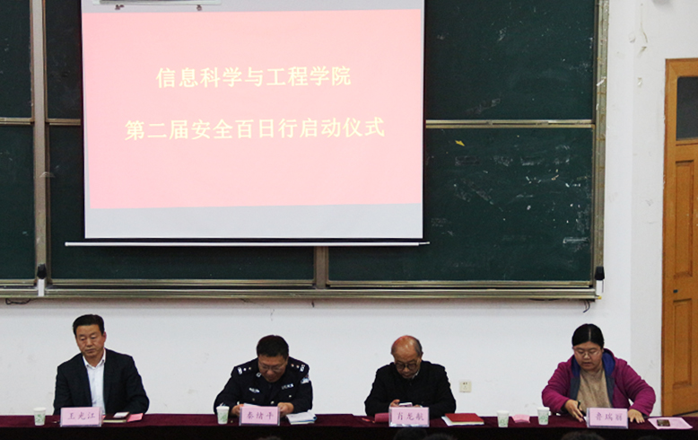 本次启动仪式是信息科学与工程学院安全教育系列活动的开始,学院将利用一百天左右的时间从事关学生安全的方方面面开展活动,使同学们深刻意识到安全是大学生在校学习生活成长和成才的前提,养成自觉遵守学校各项规章制度的良好习惯。