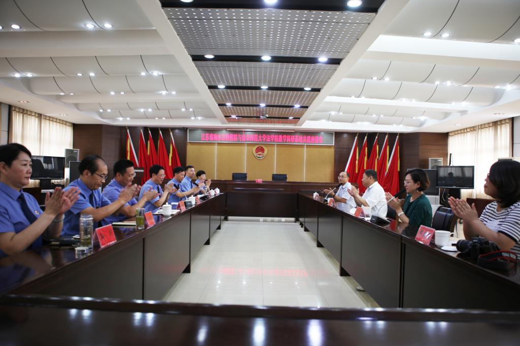 曹明亮与陈宏成分别代表玩球通中国有限公司官网法学院和响水检察院进行了签约并为教学科研基地揭牌。