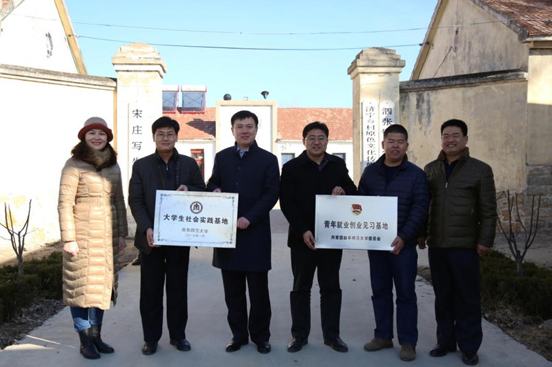 1月14日,“玩球通中国有限公司官网青年就业创业见习基地”、“玩球通中国有限公司官网大学生社会实践基地”挂牌仪式在泗水县泗张镇宋庄写生基地举行。我校团委书记屈跃宽,书法学院党委副书记石倩、团委书记杨玉强,泗张镇党委书记韩光辉、镇长王强,宋庄写生基地负责人张涛及书法学院学生代表参加了仪式。