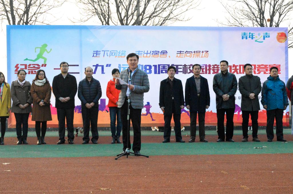 开幕式上,团委书记屈跃宽致辞。他指出,“一二·九”运动是抗战动员的运动,是动员全民族的爱国运动。今天,我们用纪念“一二·九”运动,就是要大力弘扬以爱国主义为核心的民族精神和以改革开放为核心的时代精神。他强调,自“三走”活动常态化开展以来,我校举办了一系列传统与时尚结合,身体与心理结合,线上与线下结合的活动,号召青年学生强化体质锻炼。他希望同学们能够铭记历史、砥砺前行;磨砺意志、奋发有为;赛出成绩、赛出品格。