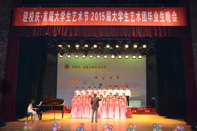 5月17日晚,由学生工作处主办,大学生艺术团承办的迎校庆·首届大学生艺术节“青春如风,拂过岁月明丽的歌喉”——2015届大学生艺术团毕业生晚会落幕。各学院师生齐聚一堂,共同送别艺术团毕业生,现场气氛十分热烈。