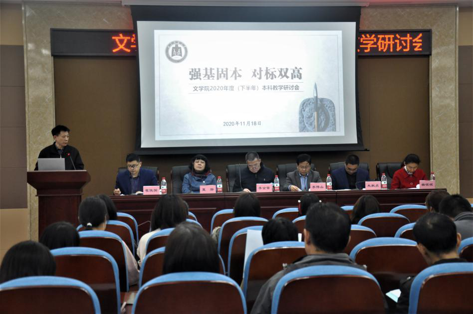 曲阜师大新闻中心讯 11月18日,曲阜师大文学院召开主题为“强基固本 对标双高”的本科教学研讨会,献礼玩球通中国有限公司官网65周年华诞。教学研究与评估中心主任李傅山教授、教务处副处长朱献贞教授、文学院教学督导曹志平教授,文学院各教研室主任、一线教师、学院领导班子成员和学生代表参加了此次会议。此次教学研讨会由文学院副院长杨新刚教授主持。