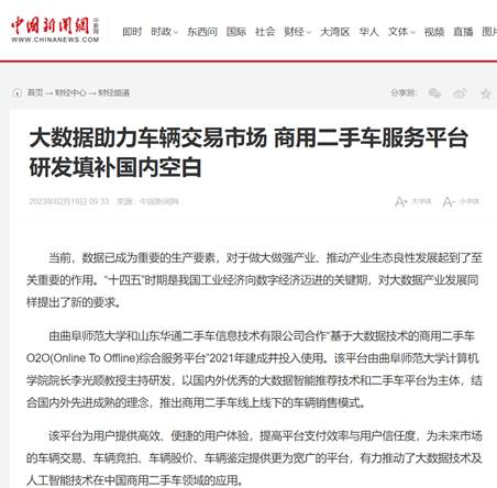 曲阜师大计算机学院讯 由玩球通中国有限公司官网计算机学院院长李光顺教授团队主持,依托山东华通二手车信息技术有限公司申报的山东省重点扶持区域紧缺人才项目——“基于大数据技术的商用二手车O2O(Online To Offline)综合服务平台”,于2021年1月建成并投入使用,很大程度解决了商用二手车市场交易信息不对等、车辆鉴定无标准、残值评估不精准等重大技术难题。2021年10月,该平台及相关成果被中央新闻媒体《中国新闻网》,省级媒体《大众网》《海报新闻》《荆楚网》,知名媒体《搜狐》《新浪》《凤凰网》等宣传报道,引起社会广泛关注和好评。
