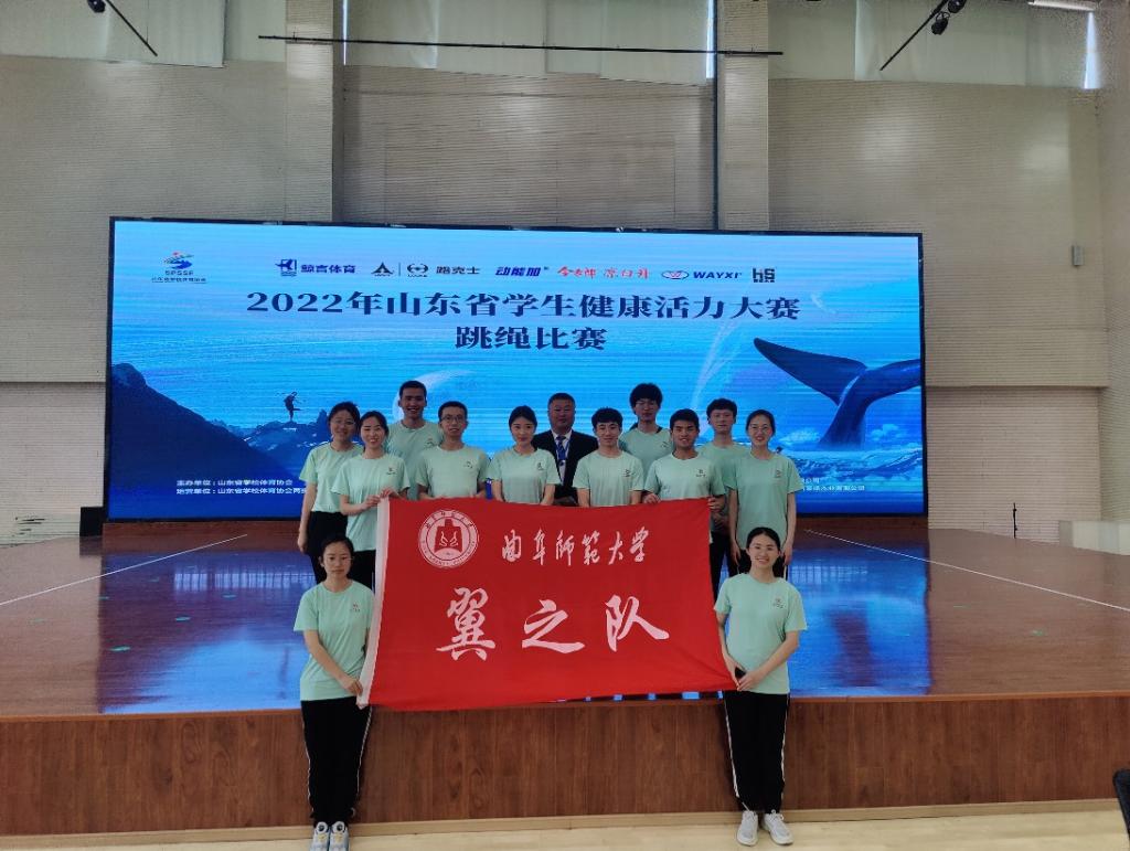 曲阜师大体育教学部讯 3月24至26日,山东省学生健康活力大赛——跳绳比赛举行。曲阜师大派出以体育教学部杨弢主任为领队、伊士礼老师为教练的跳绳训练队参加4个大项13个小项的比赛,经过激烈比拼,队员们取得了14个第一名、6个第二名、3个第三名的好成绩。