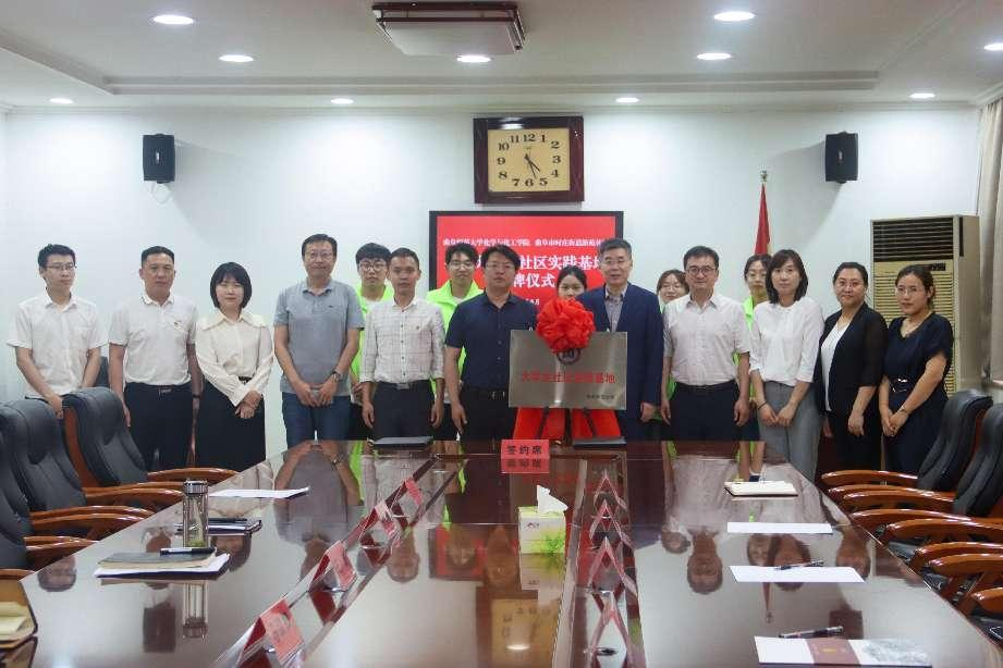 化学与化工学院党委副书记孙金玲与时庄街道新苑社区党委书记徐聪签署了社区实践基地共建协议;孔轶众与马汉卿共同为社区实践基地揭牌。