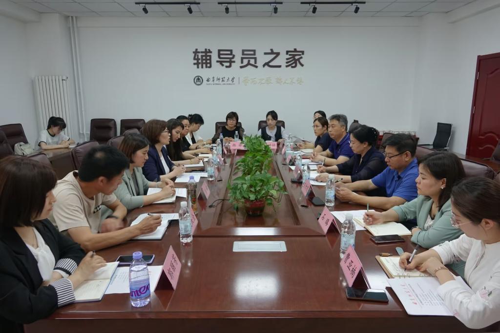 曲阜师大学生工作处讯  5月17日,天津职业技术师范大学党委学工部部长佟艳一行,到曲阜师大学生工作处交流学风建设、职业生涯规划、就业工作和提升毕业生从教率等工作经验和做法。学生工作处处长姜美颖、副处长毛永正,外国语学院党委副书记王作茂和学生工作处相关科室、学院辅导员代表共7人参加了座谈会。座谈会由姜美颖主持。