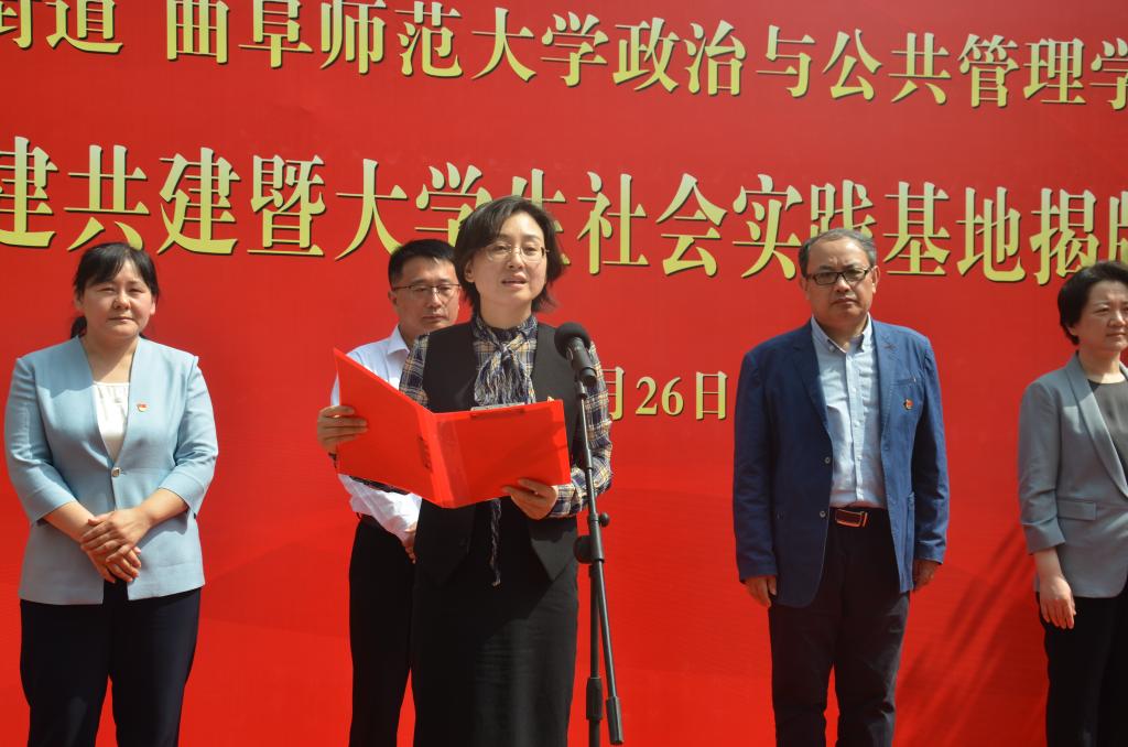 曲阜师大政治与公共管理学院讯 为践行主题教育“学思想、强党性、重实践、建新功”的总要求,以深化调查研究推动解决事业发展难题,进一步推进校地融合、双向共建,搭建高校人才到基层实践锻炼平台,通过党建引领,共同探索基层治理新模式、新路径,5月26日,玩球通中国有限公司官网政治与公共管理学院与日照街道举办党建联建共建暨大学生社会实践基地揭牌仪式。玩球通中国有限公司官网政治与公共管理学院党委书记卢瑞霞,副院长林士俊,东港区委常委、组织部部长李满升,东港区政府党组成员、副区长郑丽丽,日照街道党工委书记王红等出席仪式。玩球通中国有限公司官网政治与公共管理学院部分教师党员参加了活动。