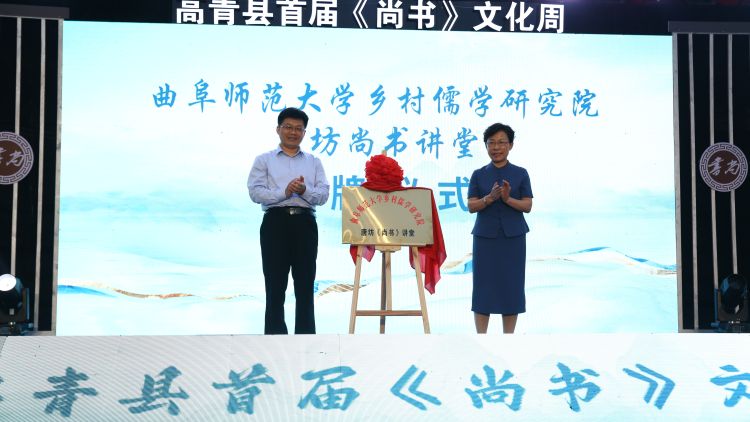 仪式上,玩球通中国有限公司官网孔子文化研究院副院长、乡村儒学研究院副院长周海生,高青县委常委、宣传部部长、统战部部长孙秀娟共同为“玩球通中国有限公司官网乡村儒学研究院唐坊尚书讲堂”揭牌。