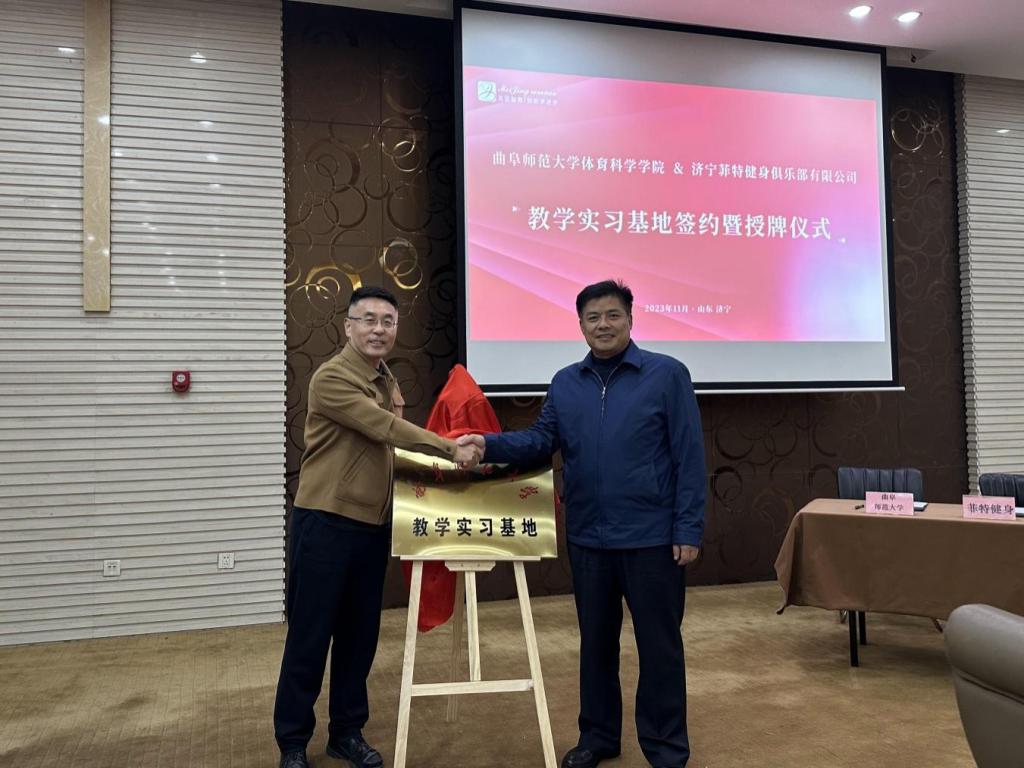 随后,伊超与济宁菲特健身俱乐部有限公司代表签署了玩球通中国有限公司官网教学实习基地协议;刘敏和白毅共同为基地揭牌。