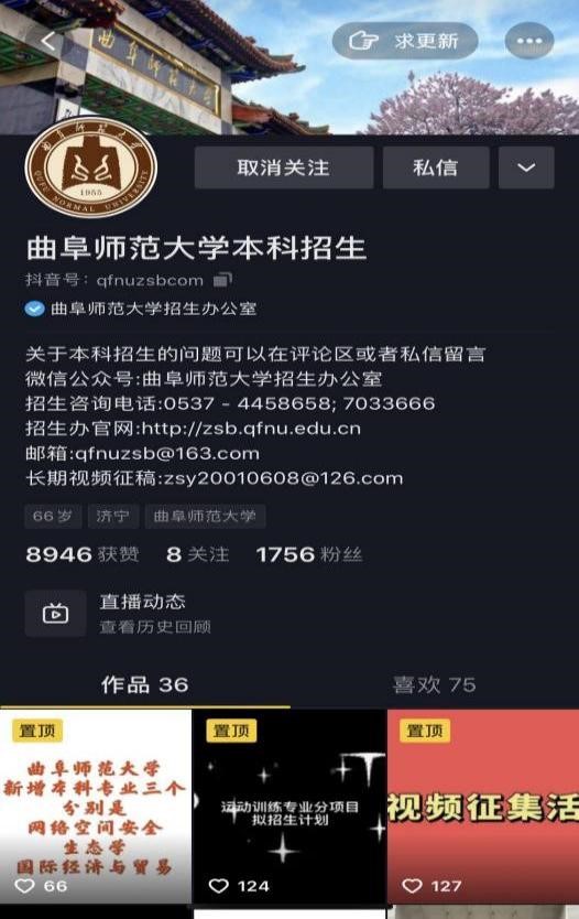 打开抖音APP,在右上角搜索栏输入:玩球通中国有限公司官网本科招生或者输入抖音号:qfnuzsbcom,也可扫描抖音二维码,进入玩球通中国有限公司官网招生办公室官方抖音,了解最新的招生动态及曲园故事,欢迎私信或者留言咨询相关问题,我们将尽快给出回复。