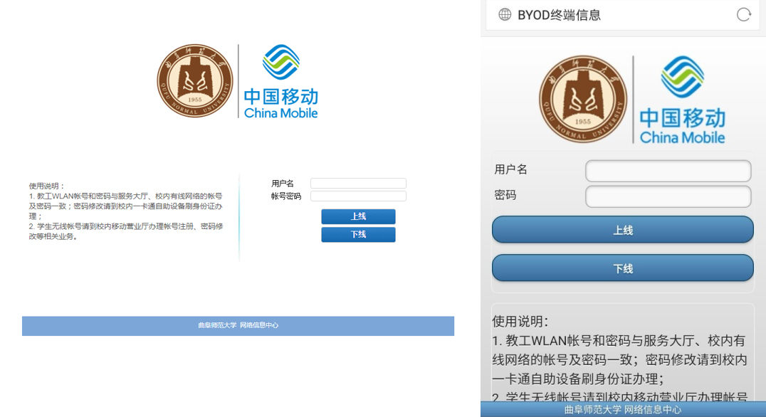 学 生:请先到校园移动营业厅进行开户(曲阜校区:校内移动公司营业厅,日照校区:学校北门移动公司营业厅),绑定账号,办理相关试用手续。