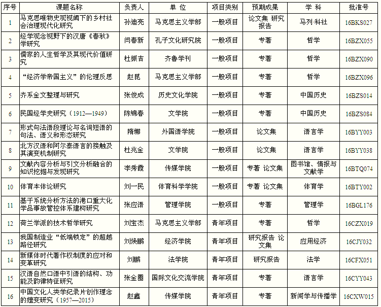 2016年国家社科基金(教育学)项目公布 我校连续两年全省第一