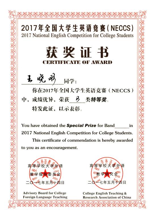 我校学子在2017全国大学生英语竞赛中喜获佳绩
