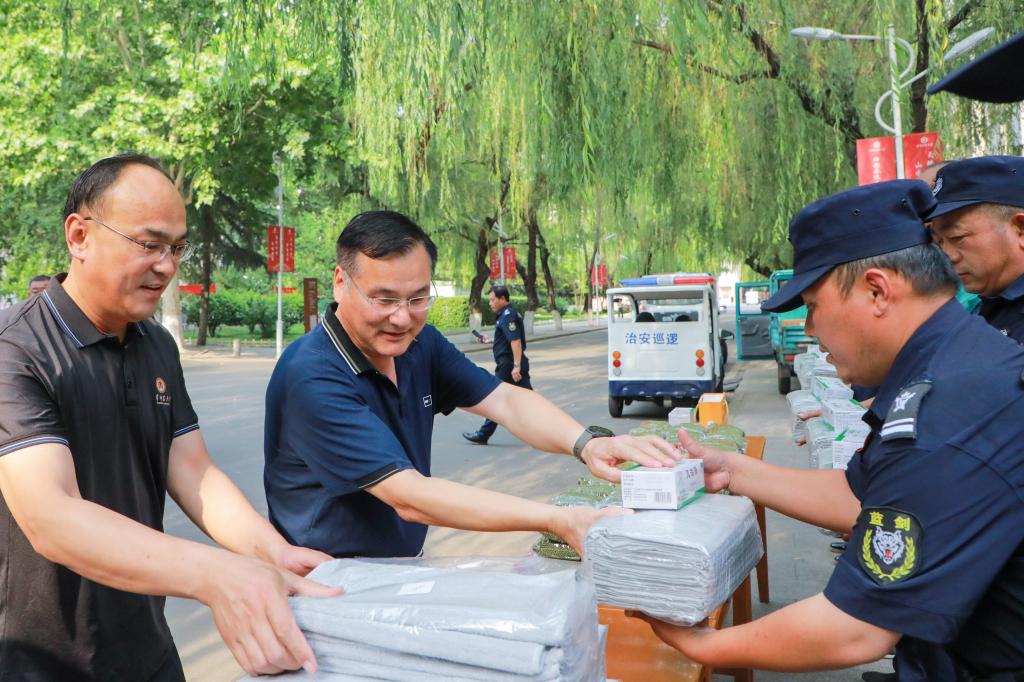 后勤管理处讯 酷暑送清凉,情暖沁人心。6月20日下午,学校党委常委、副校长陈刚率队开展“夏日送清凉”走访慰问活动,慰问坚守在校园一线的物业、安保人员。活动现场,陈刚代表学校将慰问品送到物业、安...